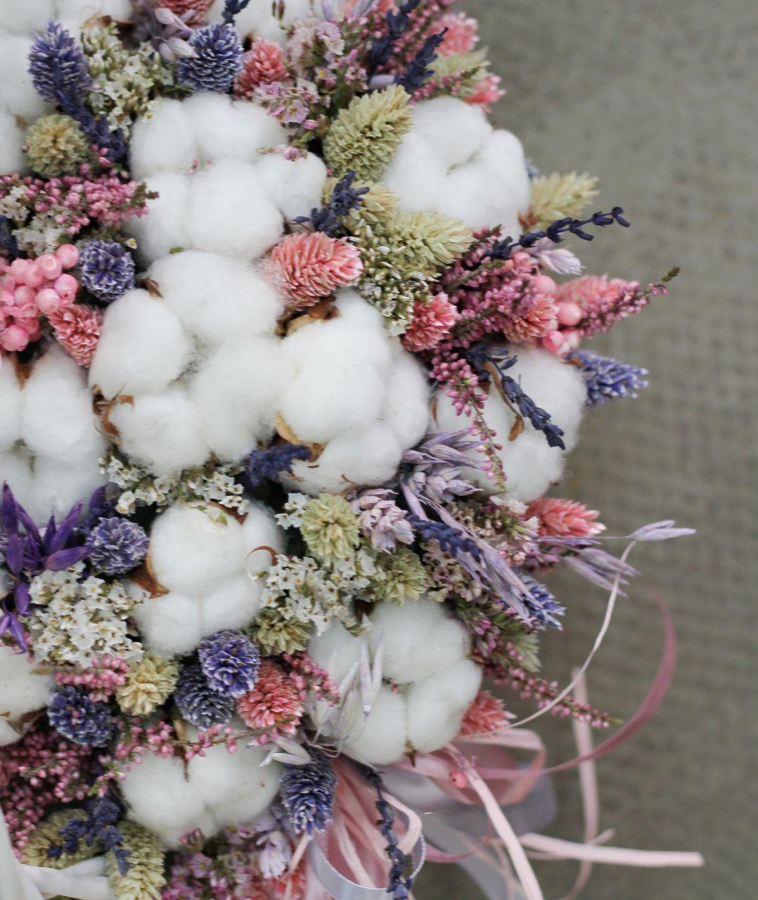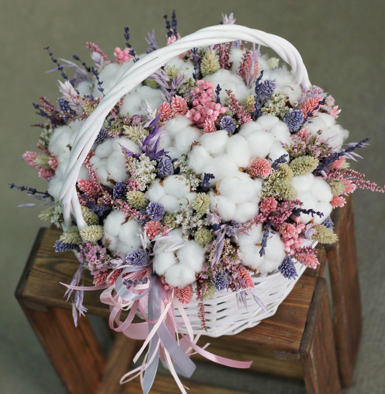 Корзина с лавандой, хлопком и фалярисом