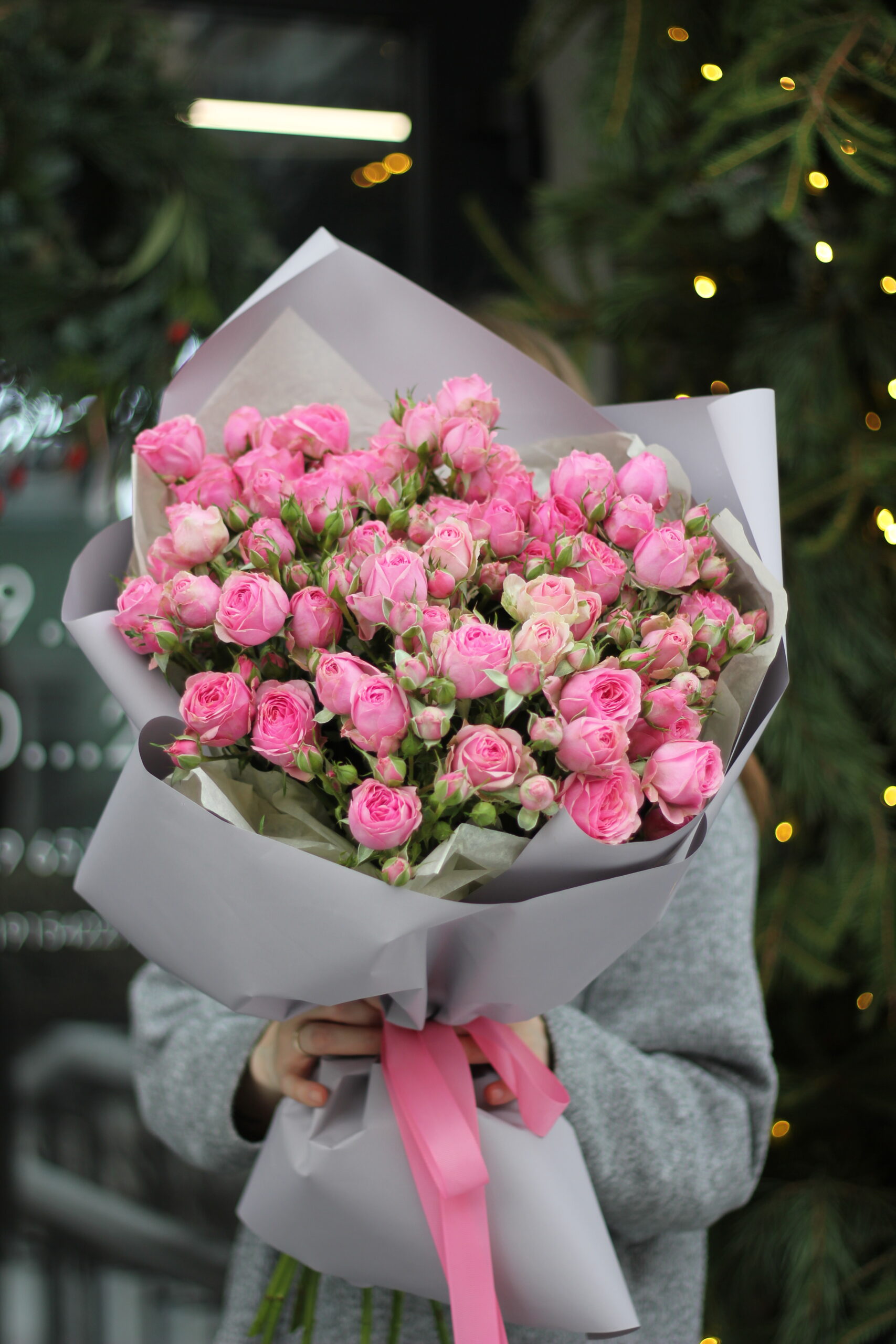 Букет с кустовыми пионовидными розами